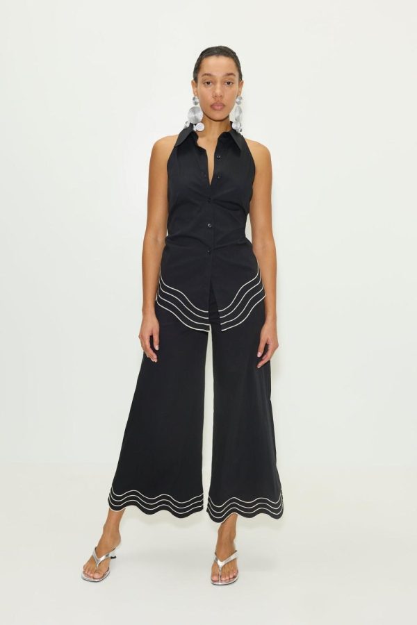 Simon Miller Black Wavy Cropped Poplin Wide-Leg Pants for Women