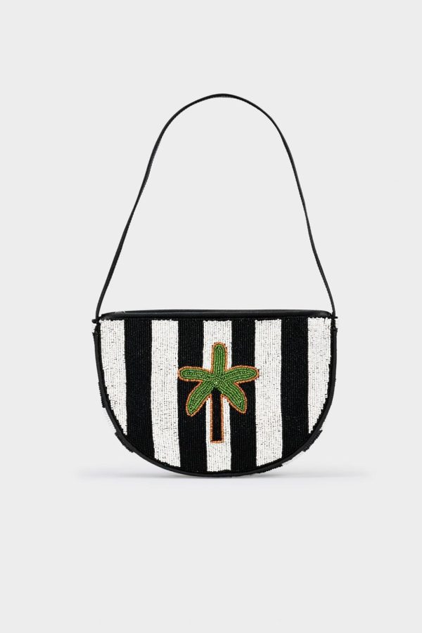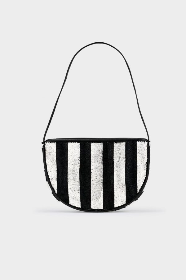 Simon Miller Women’s Belo Half Moon Bag – Black/White Striped Palm Tree Beaded Shoulder Bag