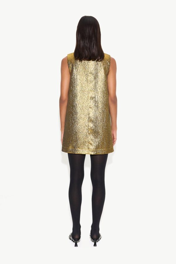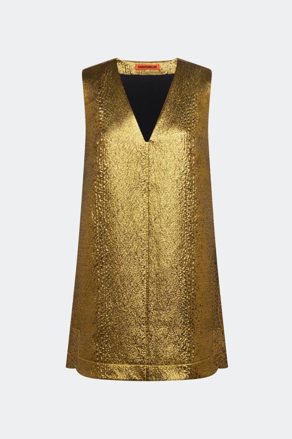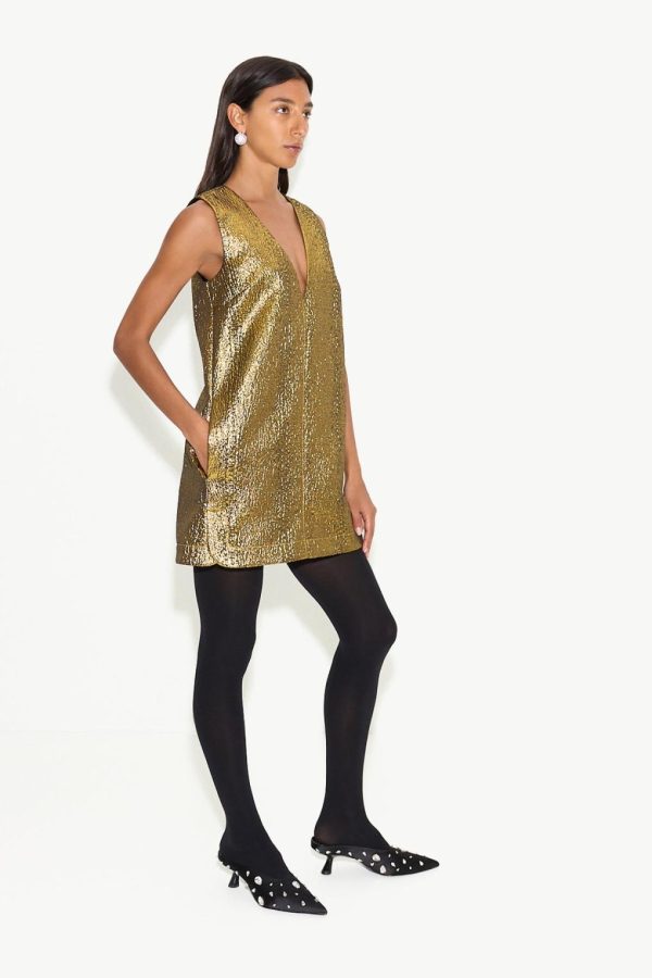 METALLIC SLEEVELESS V NECK MINI DRESS