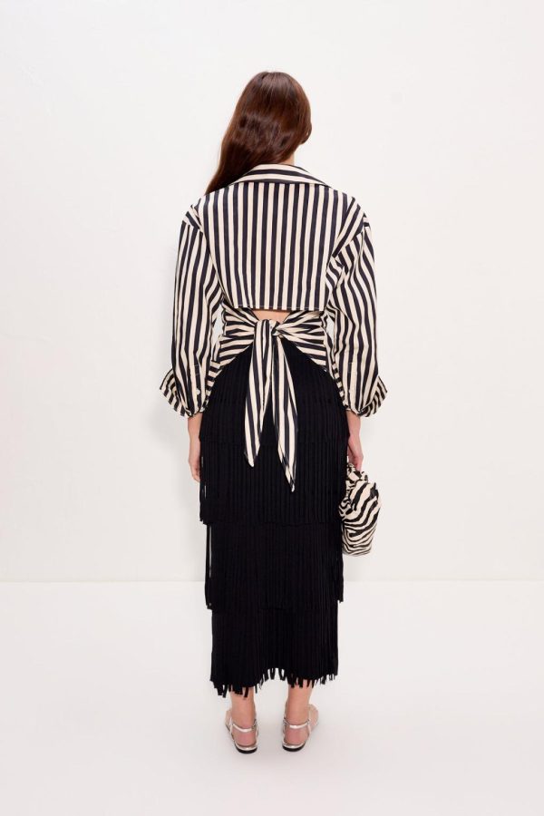 Knit fringe versatile maxi skirt.
