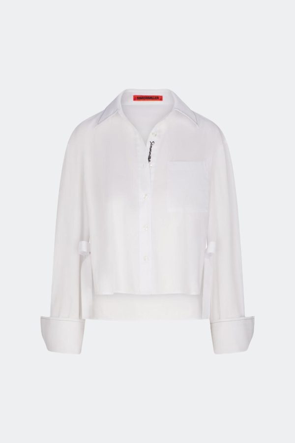 Stretch cotton poplin. Cropped and boxy fit with adjustable side openings. The ultimate versatile piece, dress up or down.